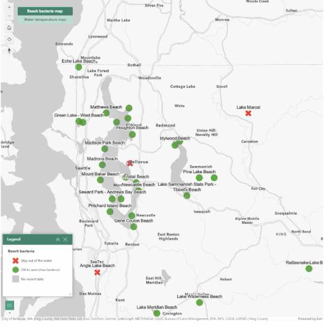If you’re looking for a different place to cool off, kingcounty.gov offers an interactive map of available swimming locations and their current safety levels. The site also offers more information on bacteria testing and water safety.