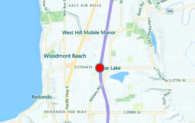 A 59-year-old Chehalis woman died early Wednesday morning, July 30, 2025 after her car struck a disabled towing rig on southbound I-5 near 272nd Street in Federal Way (map below), according to the Washington State Patrol (WSP).